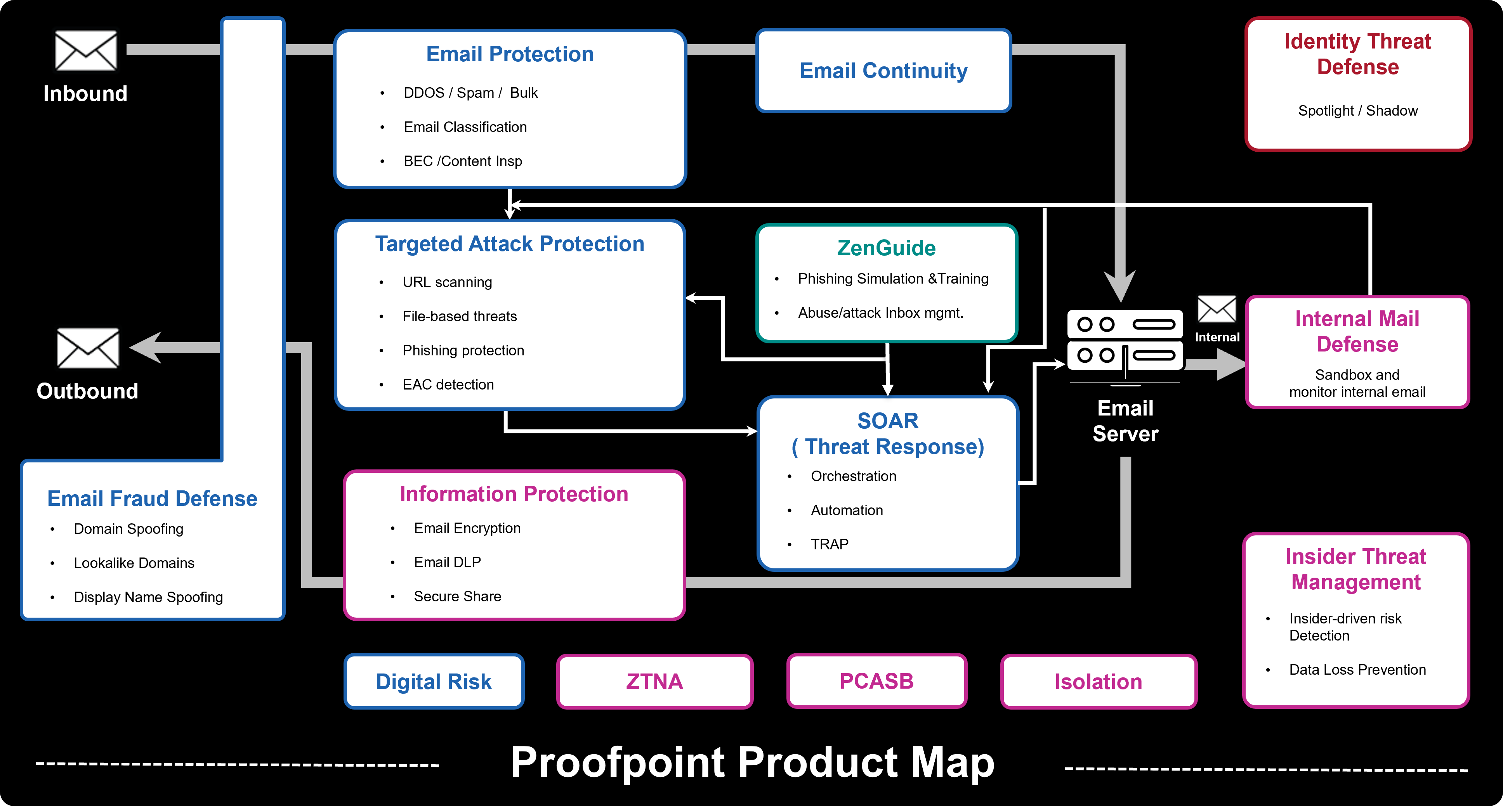 Proofpoint以「人」為本的防禦理念,提供企業郵件的保護、內部威脅的防護以及提升員工資安意識為目標的訓練產品,讓「人」從最大的威脅變成您公司最強大的防線。