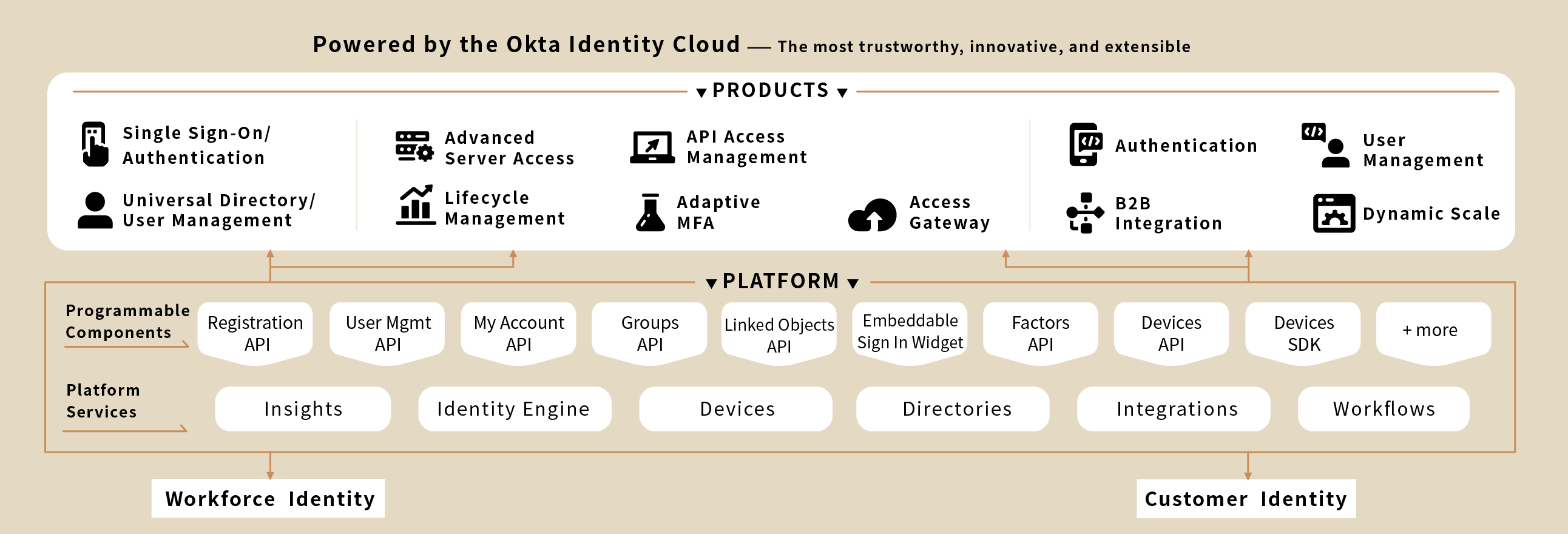 Okta清楚您不只需要管理公司的員工、也必須顧及需要存取公司服務的消費者,藉由Okta的一站式(one-stop)身分管理解決方案,輕鬆管理所有使用者